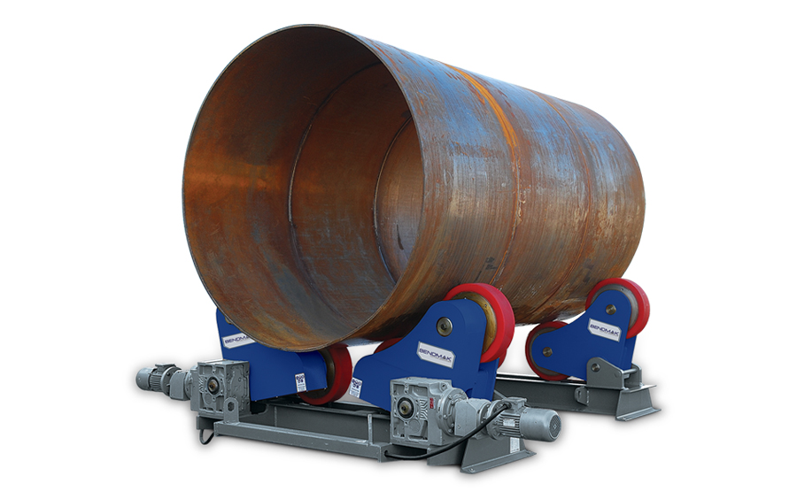 Self-aligning rotators are an ideal solution for conditions where diameter of the rotated work pieces is variable. Used for rotating circular parts such as tanks, pressurized containers, tower piping, boiler, silos, reactors, fuel drums etc. These rotators are able to adjust wide diameter ranges automatically. No additional time or effort is required to commence rotation of the work piece.