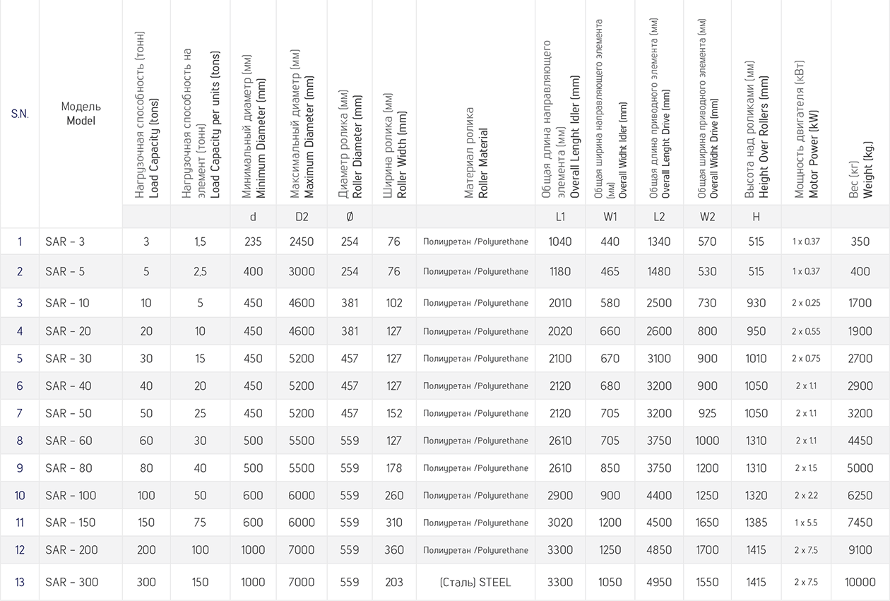 Bendmak Makine includes 3 to 300 tons self aligning rotators in its standard lists. However, custom production can be realized up to 600 tons.