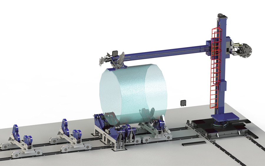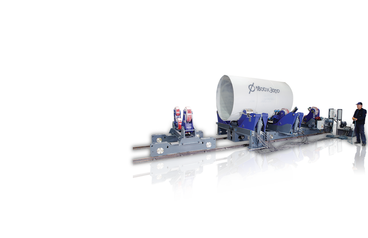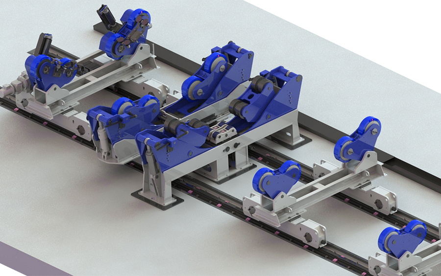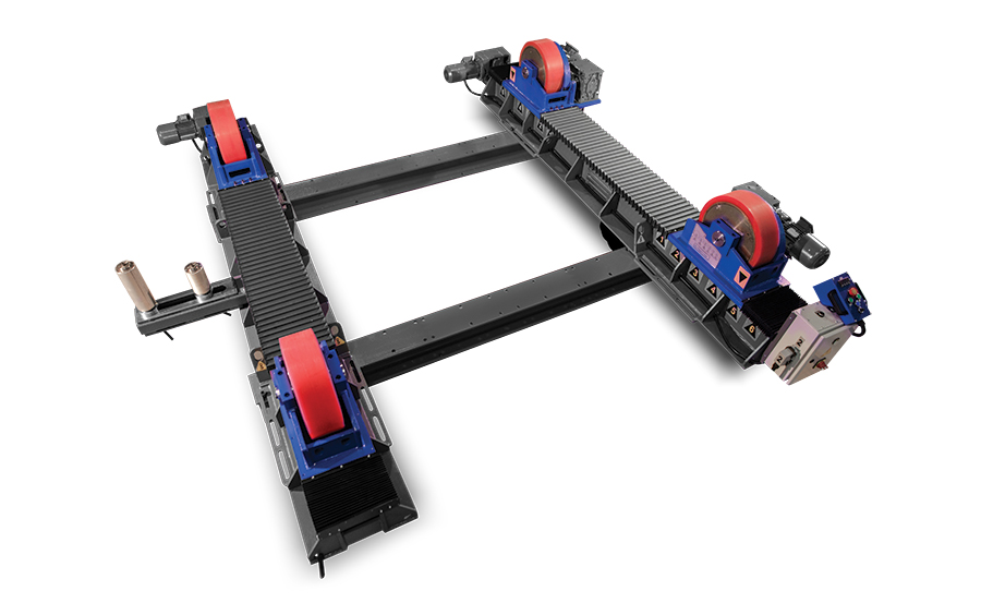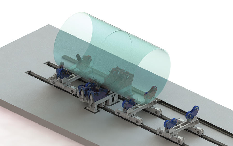 Fitup rotators consist of two idle units. One of the units is fix on the ground with steel rollers and the other travels on the rail with PU coated rollers.